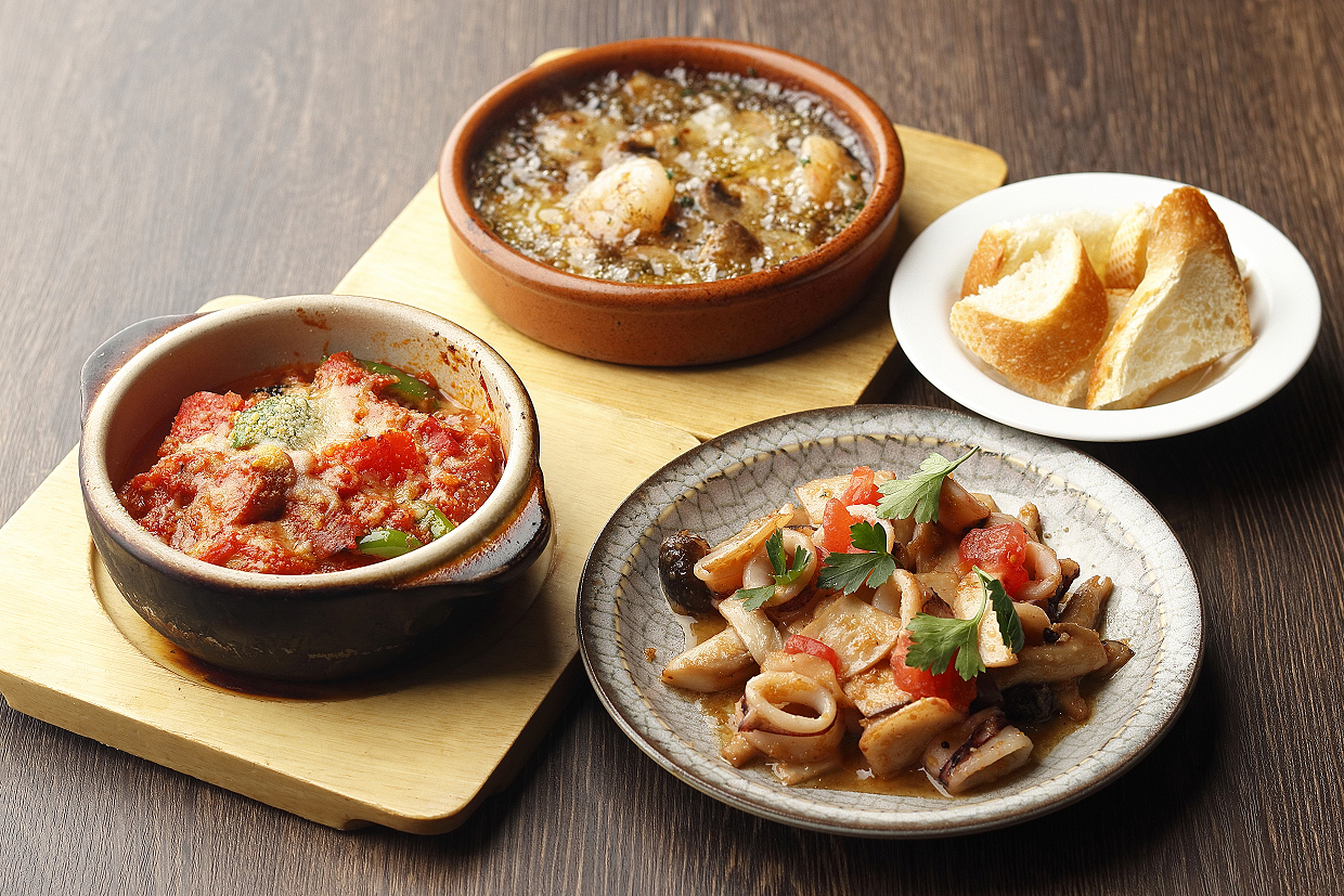名物のグリルミート盛り合わせ、各種お肉料理をはじめ、お酒に合う前菜(小皿料理)から、ピザ・パスタ、夜の洋定食とお食事系まで多数ご用意しております。