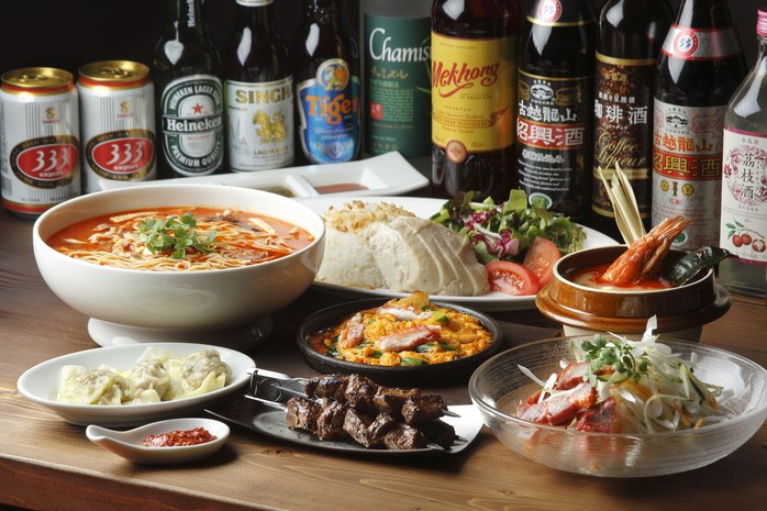 アジア屋台風の雰囲気で中華料理やアジアン料理と、